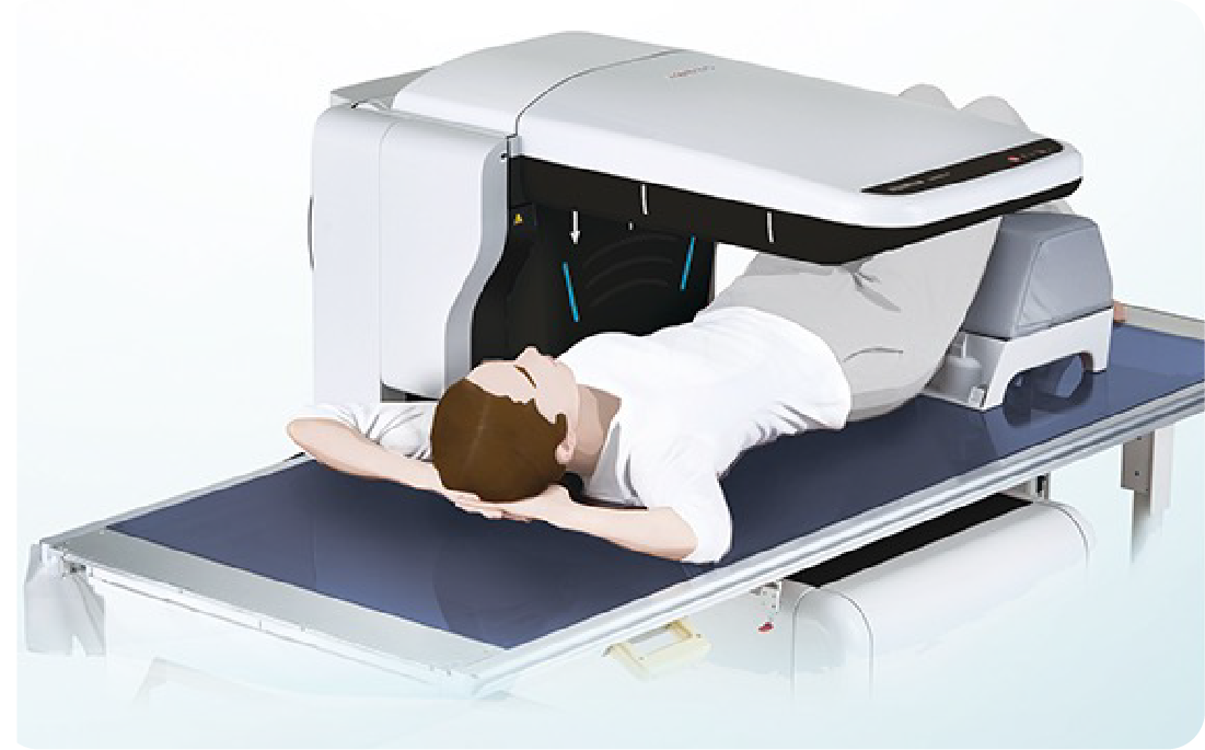 当院では、骨密度の検査にガイドラインで推奨されるDXA法による検査を行っています。富士フィルム社製X線骨密度測定装置ALPHYS LFを使用しております。